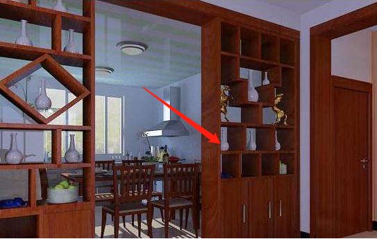 对于我们传统的装修设计来说,最常见的就是隔断式的柜子,一般是放在玄关的位置,用来隔断客厅和餐厅,这种柜子一般都是半截柜子和镂空设计结合,下面放鞋子,上面做酒柜。
