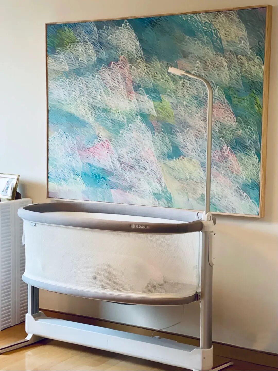 儿童房内没有什么繁复浮夸的装饰,彭博《积尘0811》的画作用简单的色彩,营造一种清新感,十分宁静。