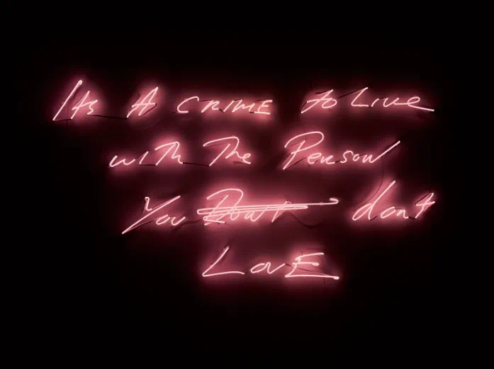 英国国宝级艺术家Trancy Emin将自己手写的文字利用霓虹灯的形式表现出来,肯豆的豪宅装的也是这款灯!(霓虹灯的中文大意是:和不爱的人在一起生活是一种犯罪)