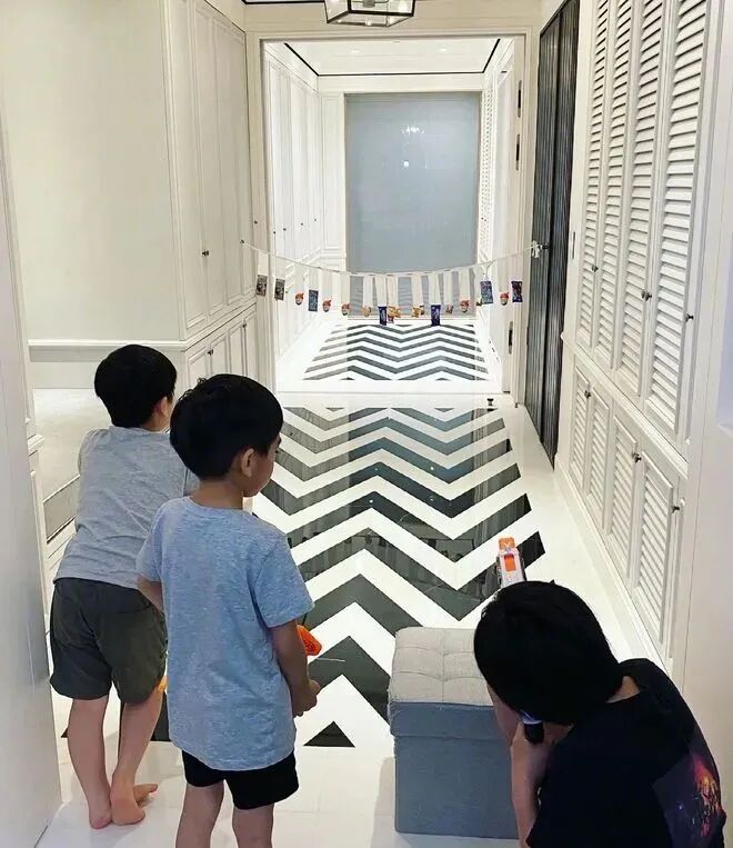 另一个客厅专门供孩子们使用,倒是与普通人家没什么两样,厅里全是孩子的玩具、图书等,这里是林志颖陪娃做手工的“阵地”,各类收纳箱非常整齐,他家几乎一切都靠声控,窗帘、门、灯......智能化设计早早就用上了。