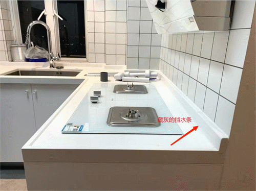 即使换成了一体式圆弧形挡水条也极容易藏灰,粘胶的地方时间长了也容易变黄,其实原本一条缝隙,现在多条接缝,特别是重油烟区,更是难清理。