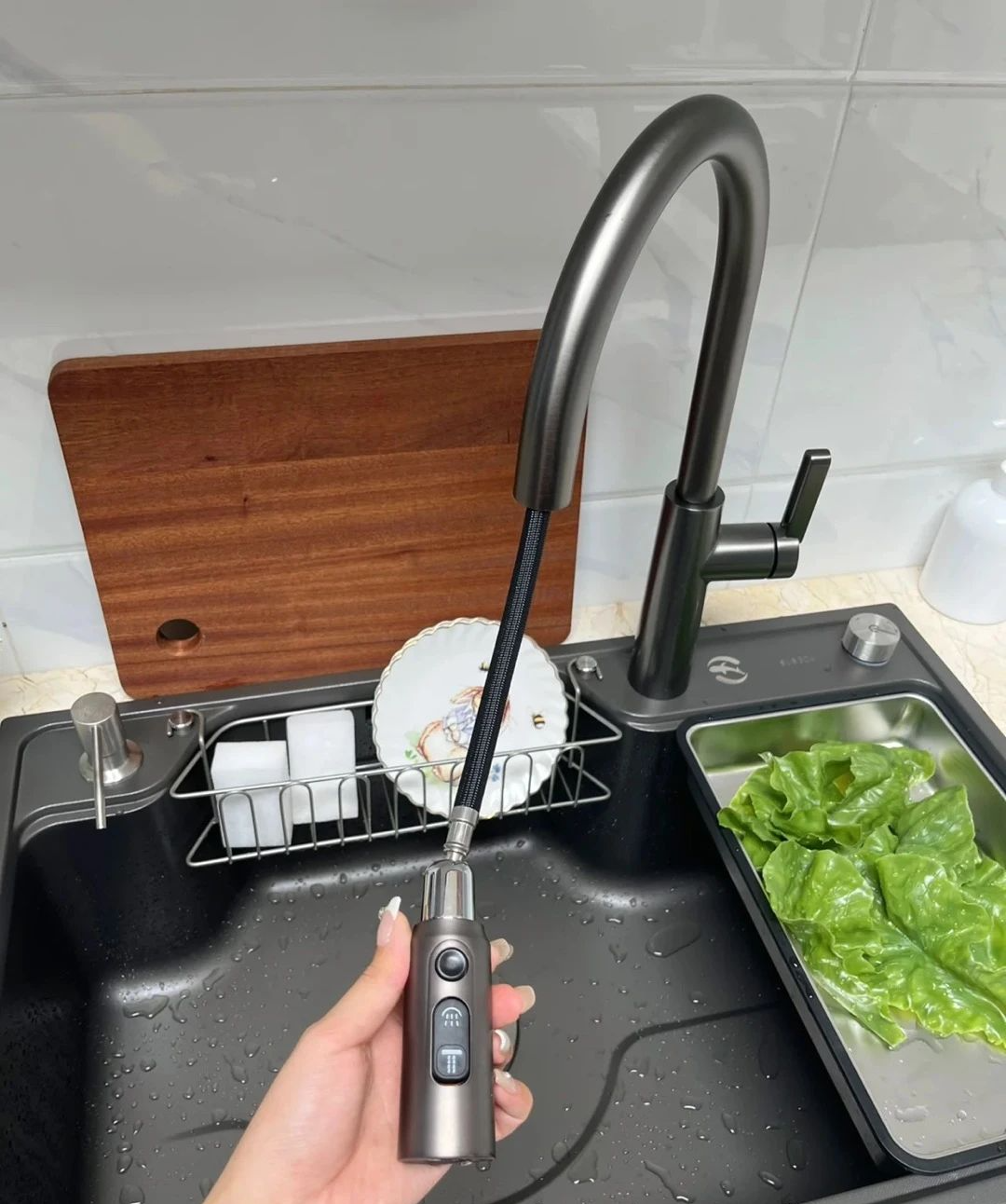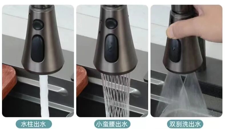 👇水龙头可调节不同的出水模式,可以控制水量,比如冲水槽更便捷,不用再想别的办法冲。