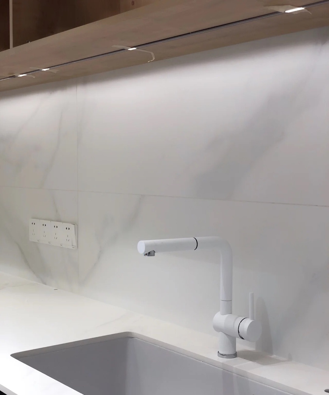 另外,为了解决两个不同墙面的缝隙问题,在安装台面的时候,要选择做工手艺够好的师傅,这样才能确保精准测量和复尺,降低安装时产生的尺寸偏差。