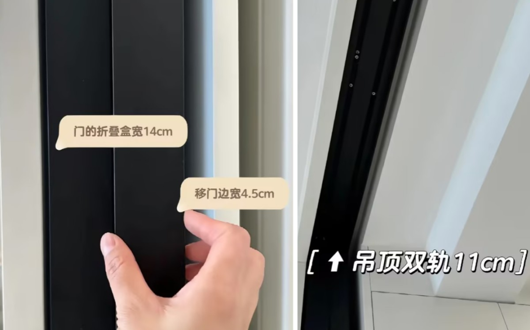 但装隐形推拉门对结构承重、轨道尺寸、门的宽度和折叠盒尺寸等都要一一考虑,而且必须要在木工吊顶时就要告知,以便预留出吊轨的尺寸,不然影响后续安装。