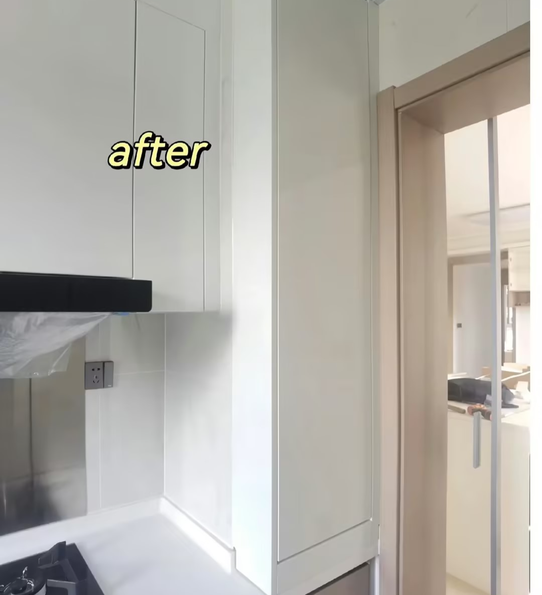 关上门以后,上连顶,厚与台面齐平,整整齐齐,也毫无突兀感。