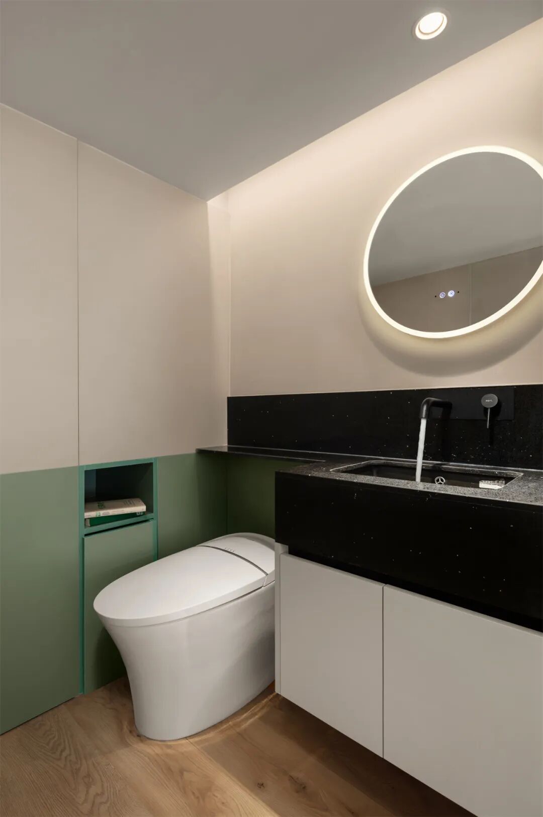 从玄关往里走,右侧是一个独立式洗手台,开放式的设计满足主客使用,更符合日常生活习惯,回家-换衣-洗手的动线设计足显人性化,更突出生活的舒适度。