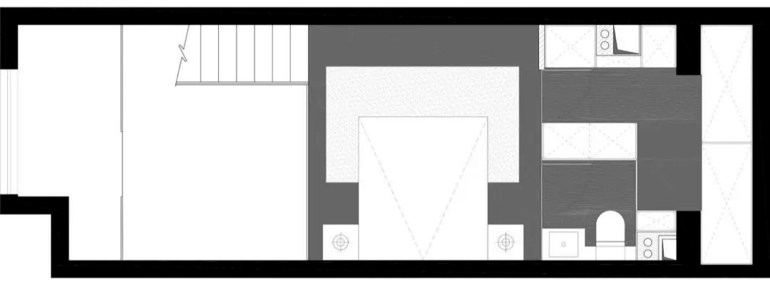 即便是很规整的一室一厅一厨一卫的户型,但是我们需要空间之间相对孤立且生活动线舒适,为了能赋予空间适合屋主日常起居的功能安排,于是拆除了室内全部的非承重墙体,方案将客厅、餐厅、厨房及休闲阳台整合为一个大空间。