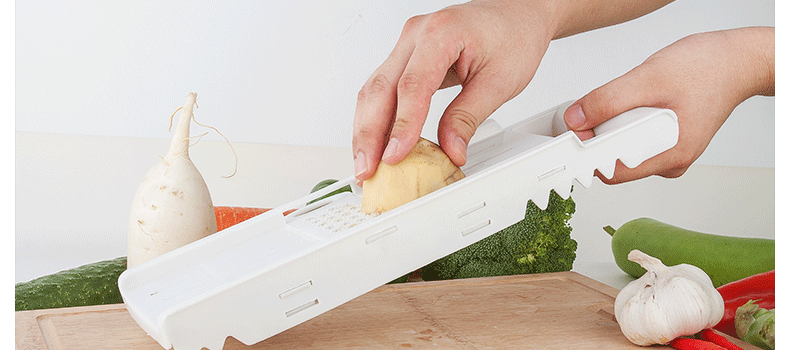 对于很多和我一样的厨房小白来说,切丝切片很考验刀工,之前,被传统切菜板不小心刮破手,口子太大,再也不敢用了。