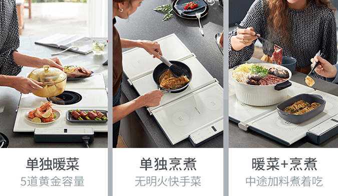 三档调温设计:80℃温暖入口,100℃边吃边暖,120℃快速加热,因为是智能变频控温设计,保护饭菜里一汤一水的温度稳定,使用更随意。