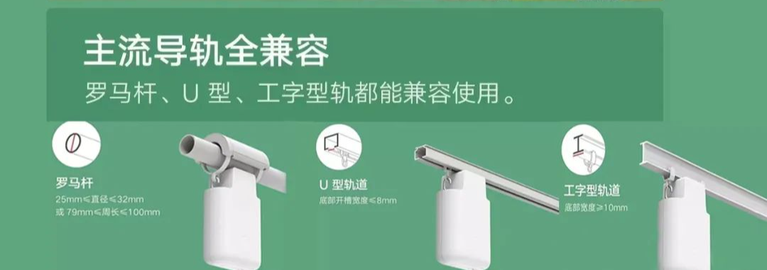 不仅罗马杆,而且U型和工字型轨道都能装,不用改造窗帘轨道,如果喜欢双开就装两个,如果喜欢单开就装一个。