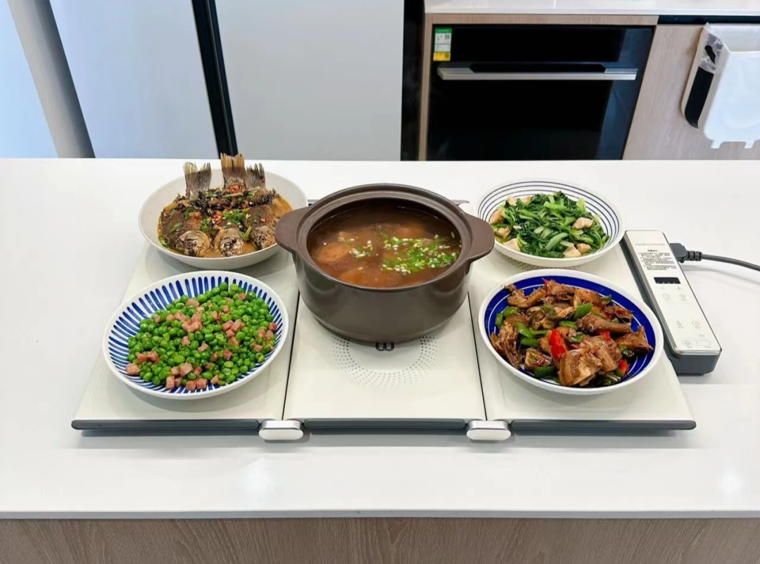 用了这个保温菜板不担心前后炒出来的菜变凉,持续恒温,我们吃完之后,将老爸留的菜放上来,调节保温温度和时间,可选1h、2h、4h,非常智能,到家就有热饭,避免了因二次加热后,而影响口感与营养成分,这样也不影响我们正常休息。