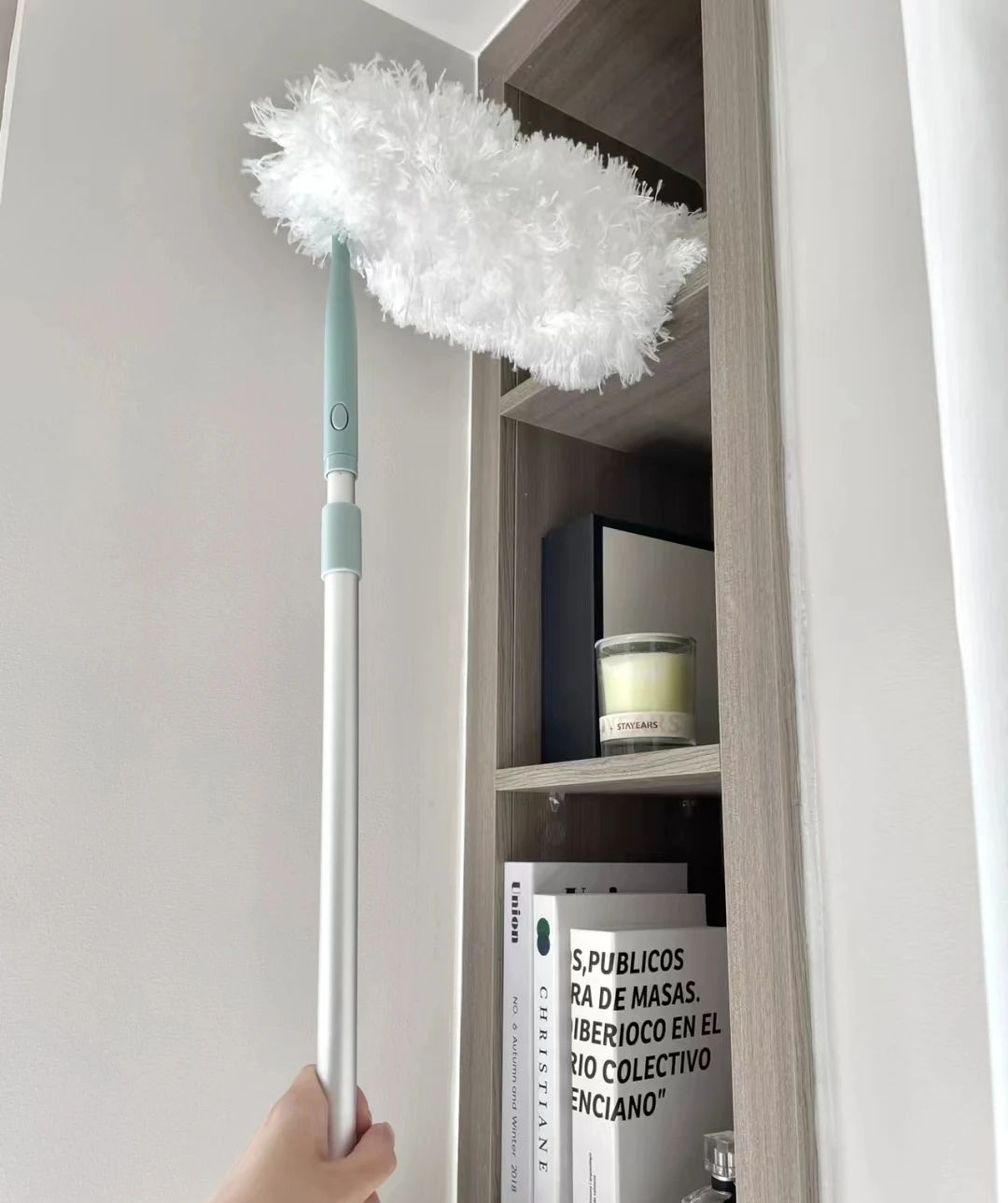 杆子可以伸缩,掸头可以弯曲,不掉毛吸附力超强,清洁高处也变得更容易,缝隙也能伸进去清洁。