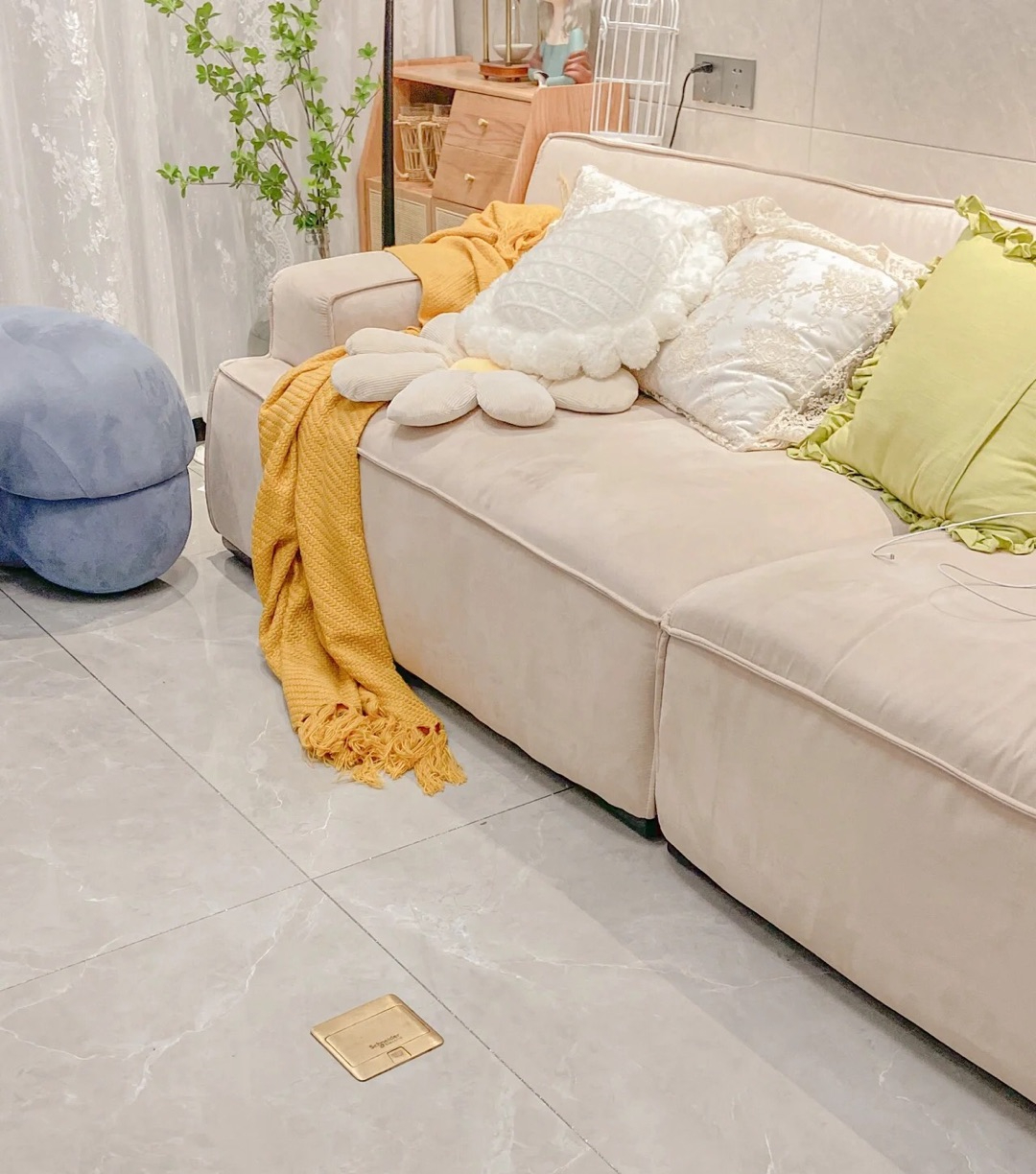 相较于墙插来说,好像地插立刻解决了线短,在沙发上玩手机和充电的需求,甚至在餐厅吃火锅都感觉方便了不少,不用再找插线板接线了。