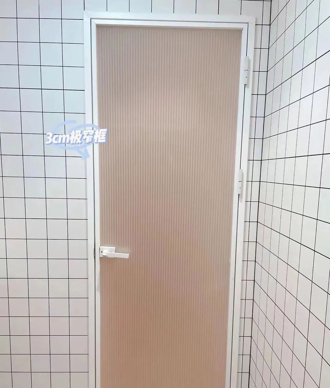 建议:极窄门一定要选门框和门套都是极窄的,而且最好选双层玻璃,除了选超白玻璃之外,还要加磨砂玻璃,才能防止走光。