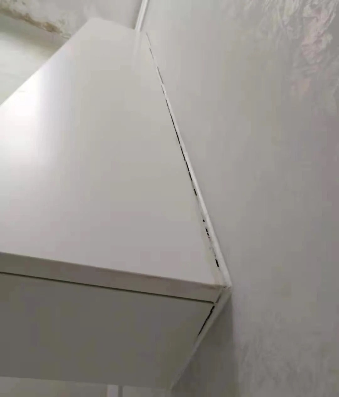 一旦柜子太重,墙面根本挂不住,还得要支撑脚,而且墙体和柜子的缝隙容易有裂痕,放太重的东西,随着时间会越来越往下坠。