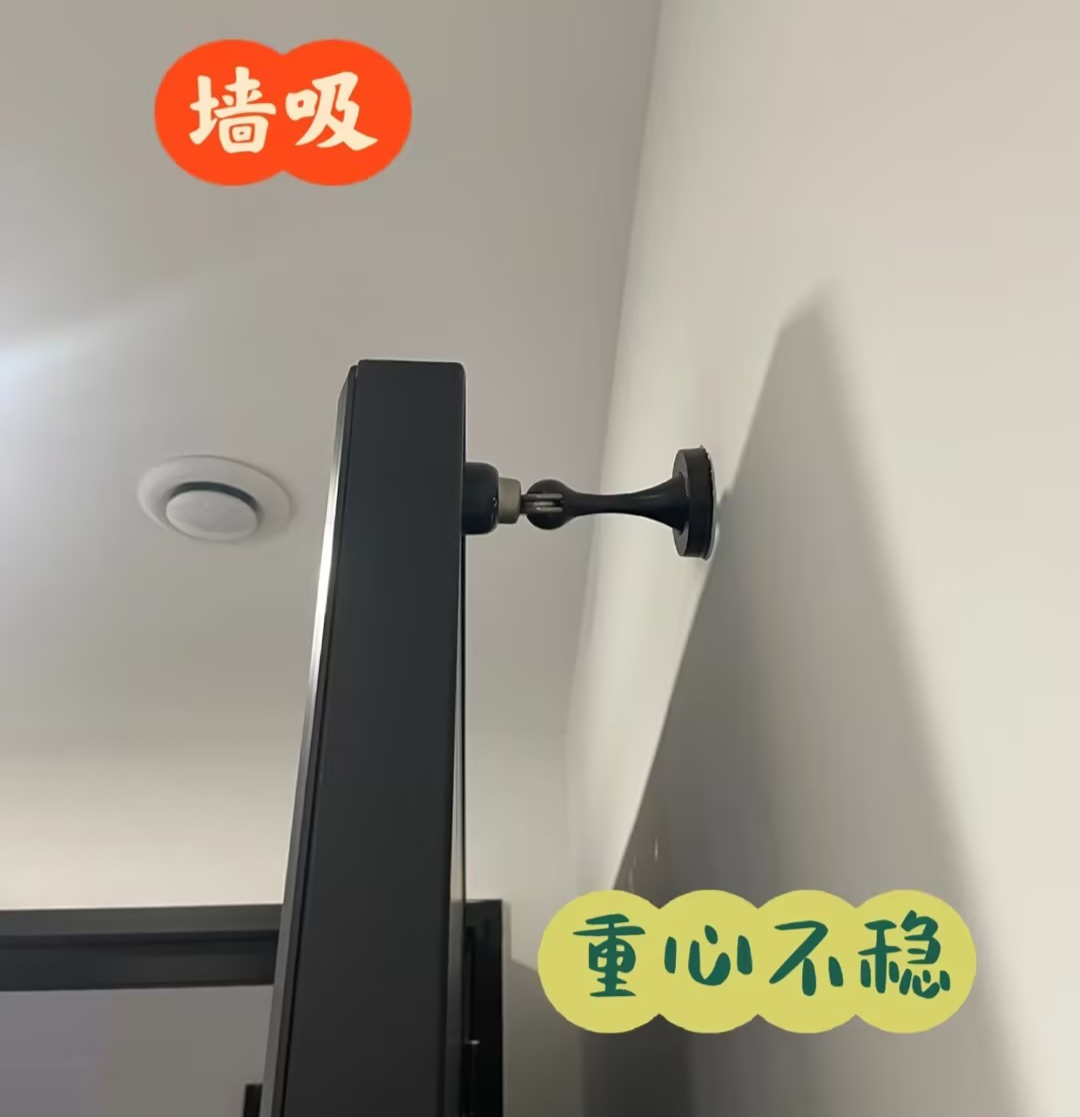 即使安装到墙顶避免了磕绊,但是重心偏上极为不稳,不用力的话门无法吸住,安装的意义不大。