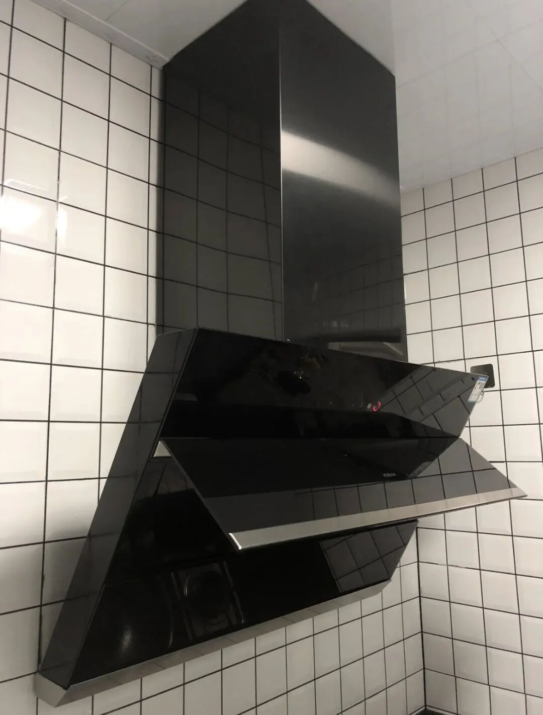 再有就是你会发现,效果好一些的侧吸油烟机都是带挡板的,某书上吐槽最多的也是遮挡视线的问题,而且不同于顶吸,侧吸是完全不能够隐藏的,观感上并不是很好。