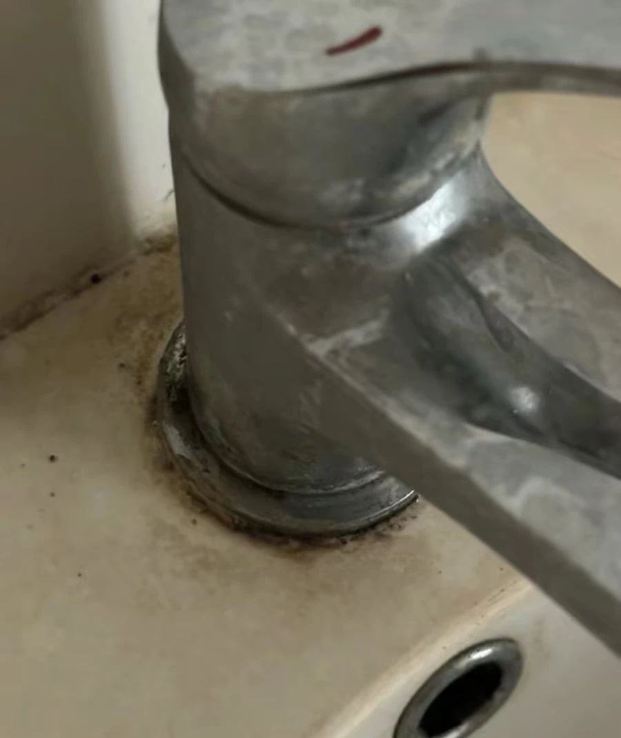 以前住老房子,家里卫生间的水龙头使用久了,很容易有污渍、发霉,必须经常清理才行。