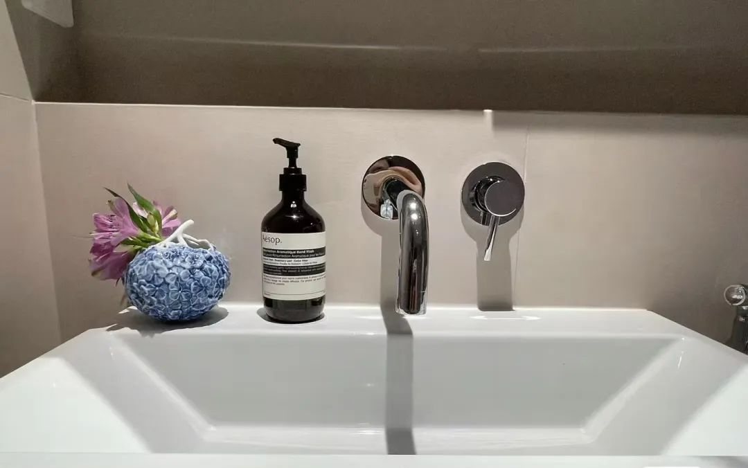 与传统水龙头相比,墙出水龙头更具美感不说,而且能解放台面,摆放洗手液、花卉等,对小空间来说可能更节省空间,利用率更高。