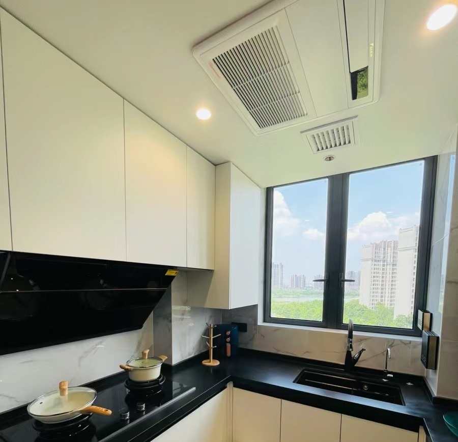厨房的空调开启,不影响其他空间,仅在厨房做到空间内循环,夏天做饭也不闷热。