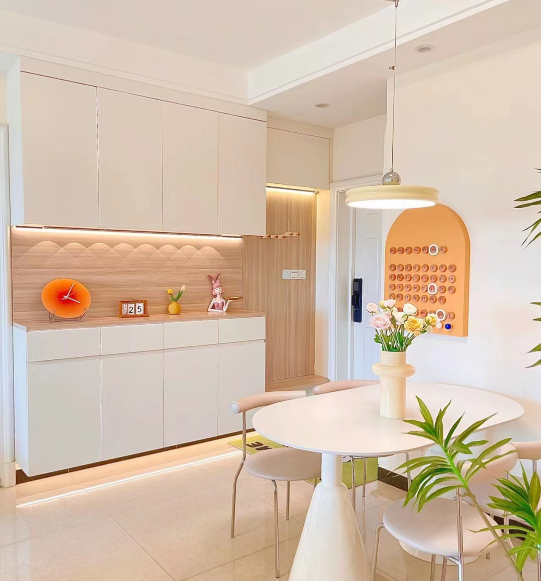 每家装修的时候都会在吊顶走一圈石膏线,看着是很精致,但我家没有做吊顶,简简单单,反而不显压抑。