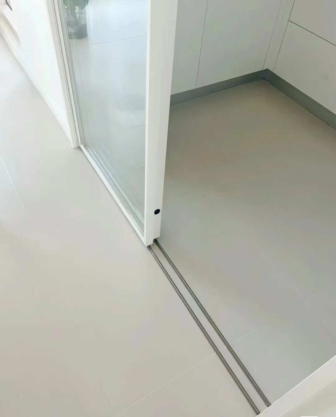 可以在瓷砖或地板上开槽,也可以预留尺寸嵌入一体轨道,把地轨变成很浅的两条金属条。也会藏灰但不明显,而且扫地机器人可以通过。