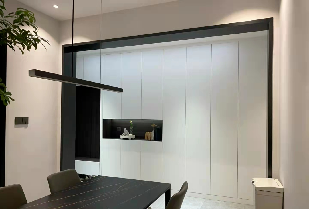 简单理解就是没有任何装饰线条的平板踢脚线,可以更好地弱化踢脚线的存在,而且不会突出墙面。将墙底开槽,开槽的高度和踢脚线的高度保持一致,把踢脚线和墙面融合,减少一些日常的清洁打扫。