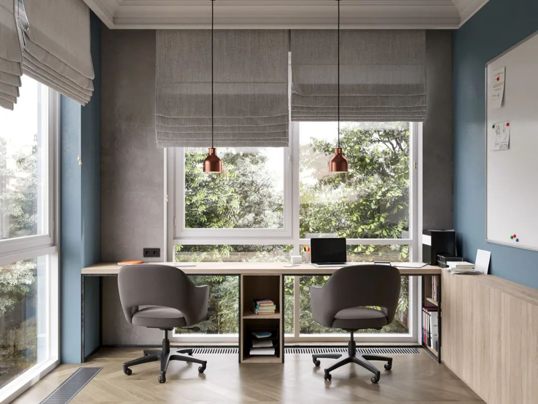 如果怕窗边光线太强比较刺眼,可以选择内置百叶窗,利用百叶窗调节光线。工作的时候可以保持私密性,休息的时候,可以看看远处风景,张弛有度!