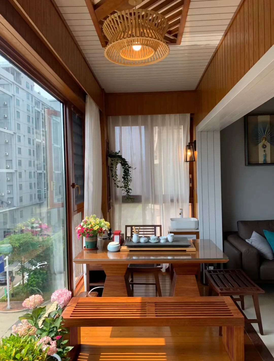 而阳台是与室外环境最为接近的地方,无论是城市的高楼大厦还是郊区的别墅,阳台都能为你提供一个亲近大自然的机会。将阳台打造成茶室,你可以透过窗户或落地窗,欣赏到室外的风景,感受到自然的气息。