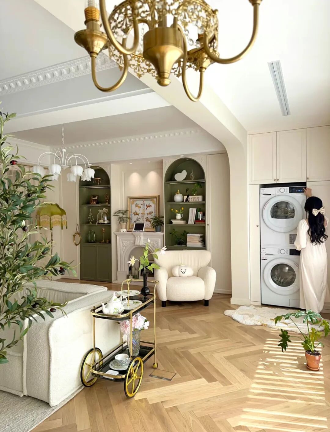 只留着晒衣服太浪费了,双阳台可以直接预留一个进行多样化打造,单阳台同样可以靠划分区域,或者隐藏晾晒区进行个性化设计。