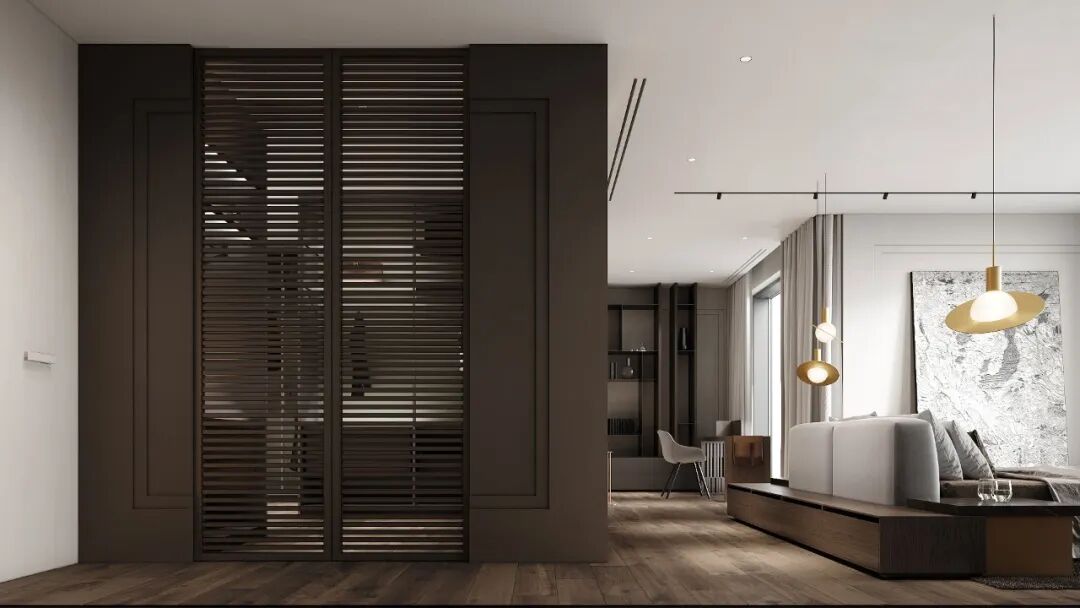 2.注意隔音措施担心主卫的噪音影响到睡眠的情况下,主卫的门要选择隔音性较强的材质,做好门缝的封闭处理。密封性强的主卫门一方面可以减少噪音对主卧的影响,也减少水汽和异味进入卧室。