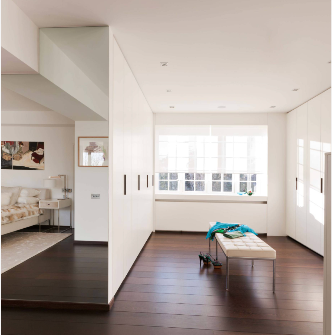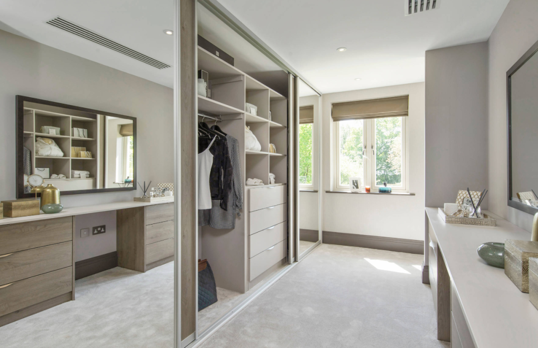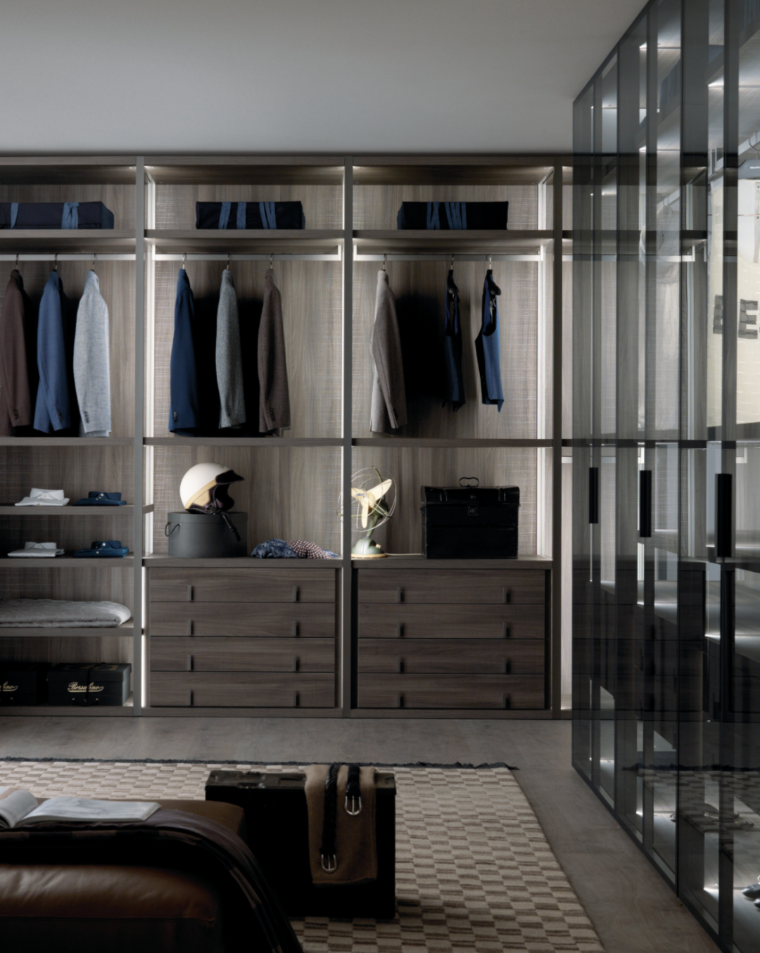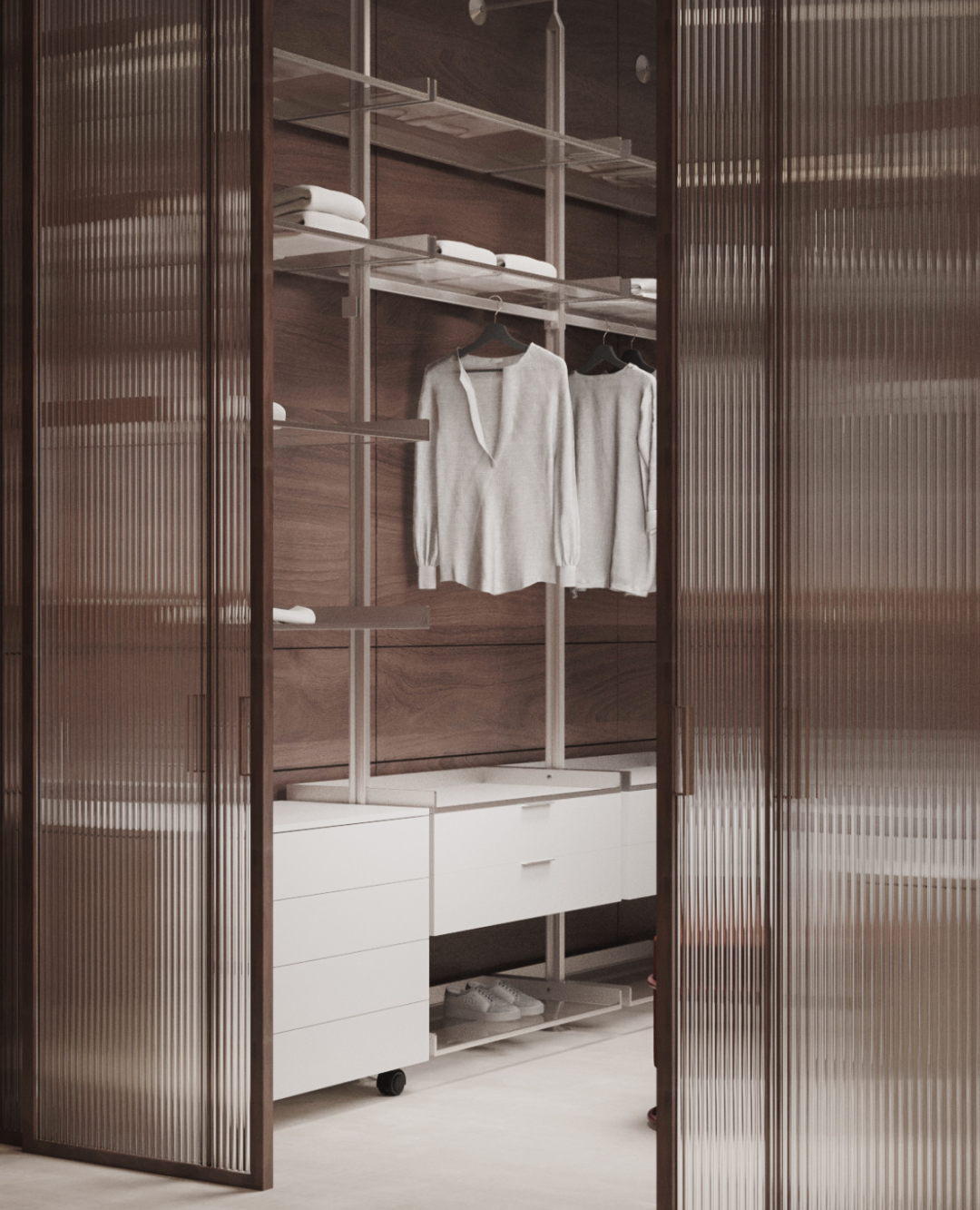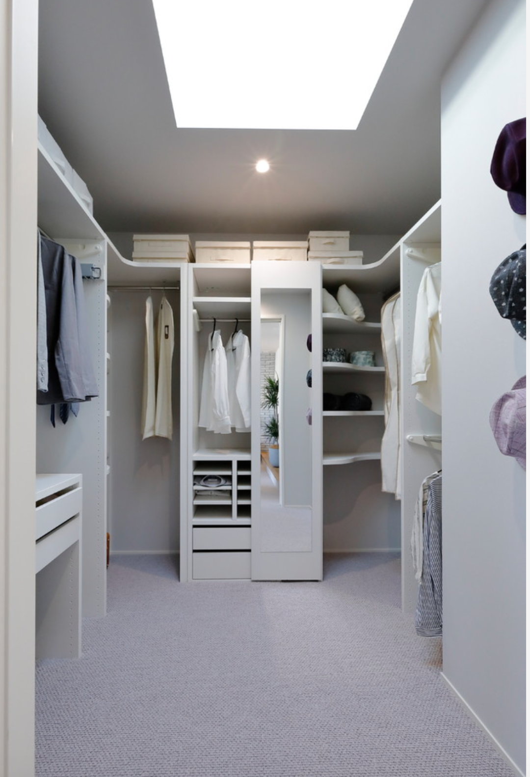 衣帽间如果选用木质衣柜极易受潮,如果潮气进入柜体,时间久了会导致柜子变形。因此,衣帽间门板最好选择防潮性好的耐磨板以及高分子聚合板作为材料。