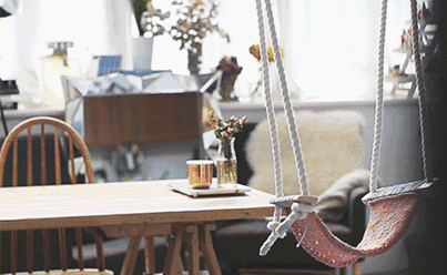 吊椅自带“休闲”属性,是营造氛围的小能手。独立式鸡蛋吊椅造型流畅,坐感舒适,不占地又易拆卸,用来看书、哄娃都不错。