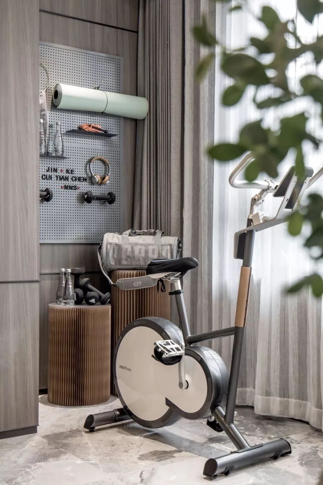嵌入式收纳柜、洞洞板,让器械统统上墙,帘子一拉视线清爽。