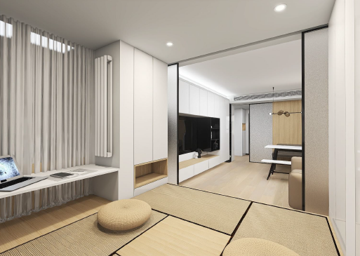 人多房子小、作息差别大,阳台变卧室帮你来解决。榻榻米+磨砂玻璃推拉门/百叶门窗,三代同堂轻松住两居,还能保护隐私,满足“安全感”。