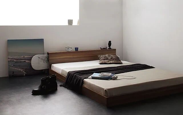 矮床意味着一回家盘腿坐在地板上,斜倚在床边的放松生活。意味着那个忙碌的一天结束之后能够完全放松自己的小房间。