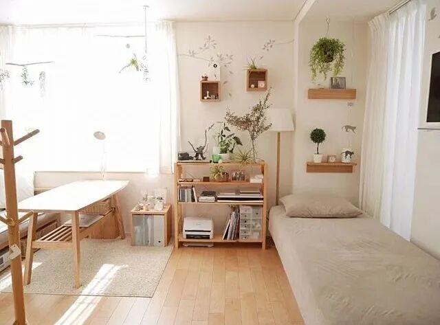 日本大部分的家具都主打原木风,和干净的床单结合起来,整个房间看起来好温馨。旁边再摆上木色的小杂货们,点上一瓶香氛,宅家的时间不要太治愈!