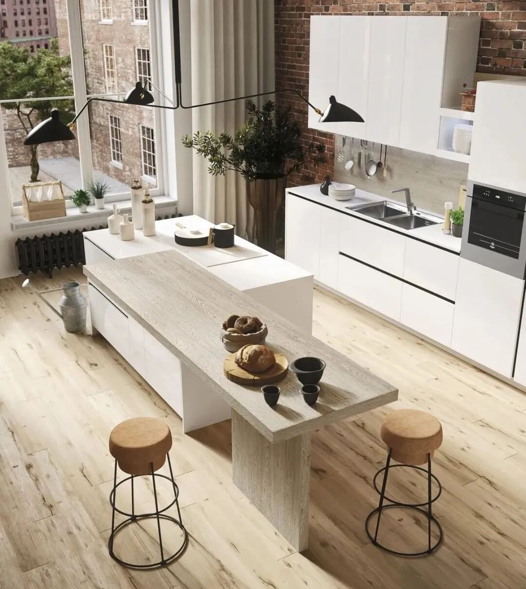最后,对于钱包和空间都允许的小伙伴,把厨房岛台和餐桌一体化绝对是最佳选择。