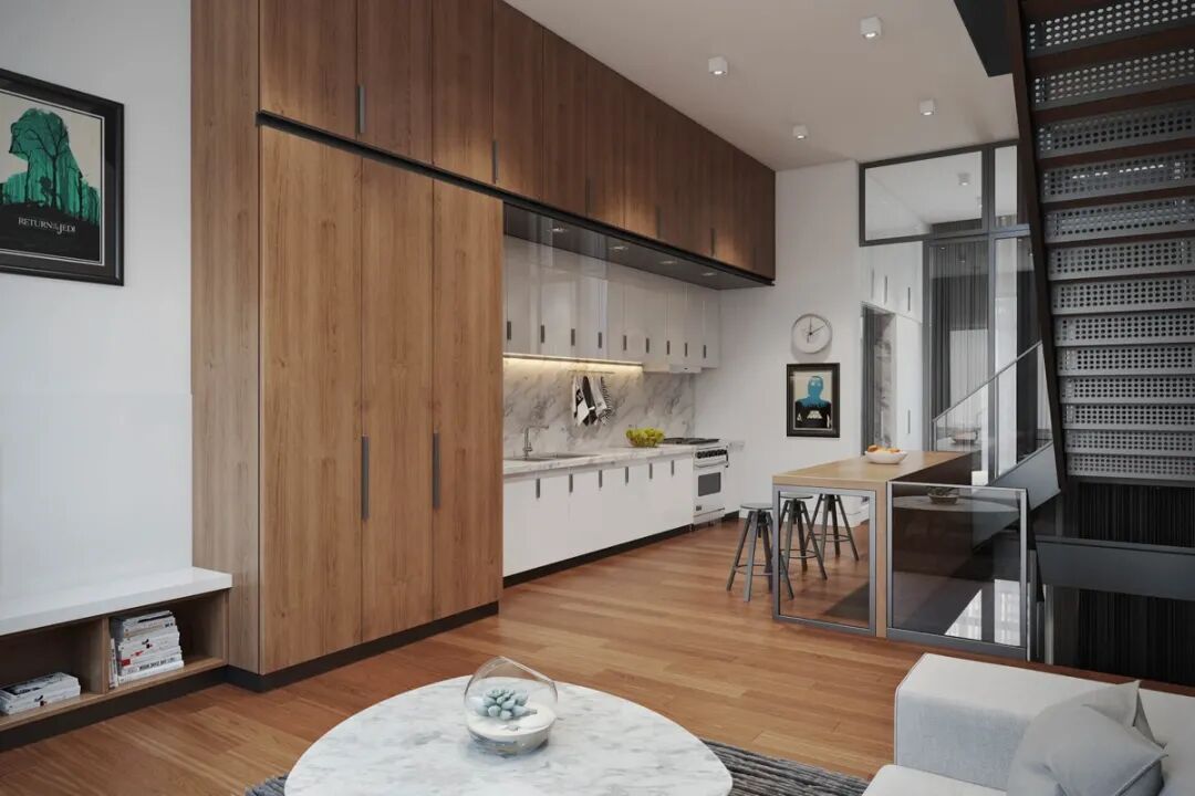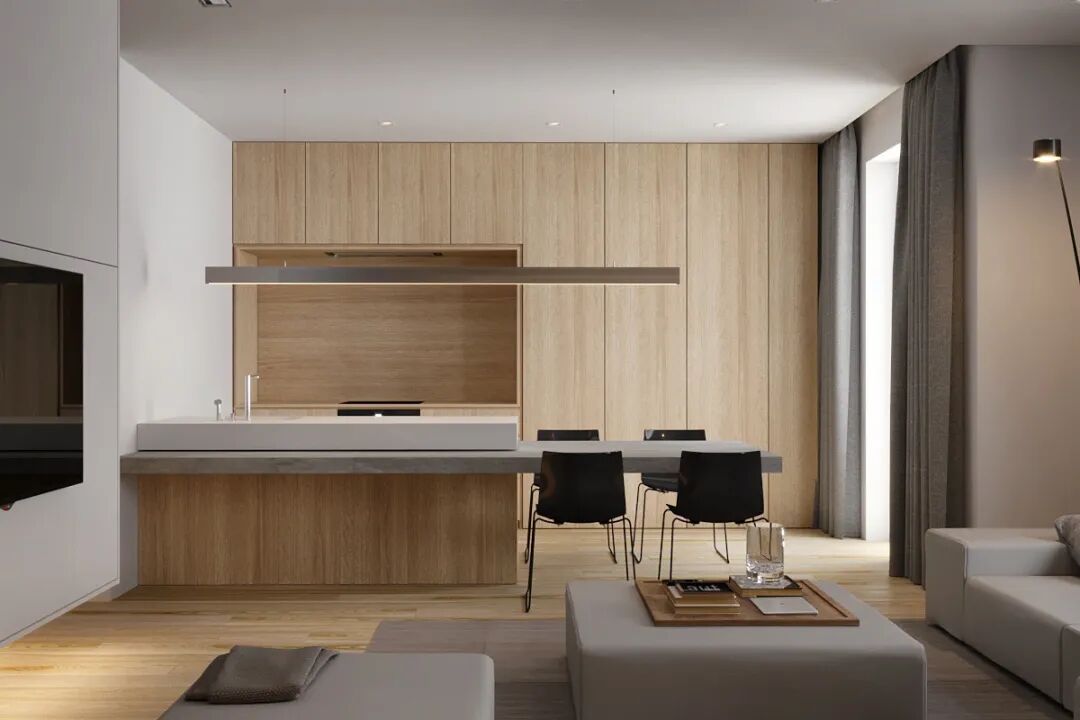 开放式厨房与客厅紧凑搭配也是许多人的选择,餐桌直接与茶几合为一体。
