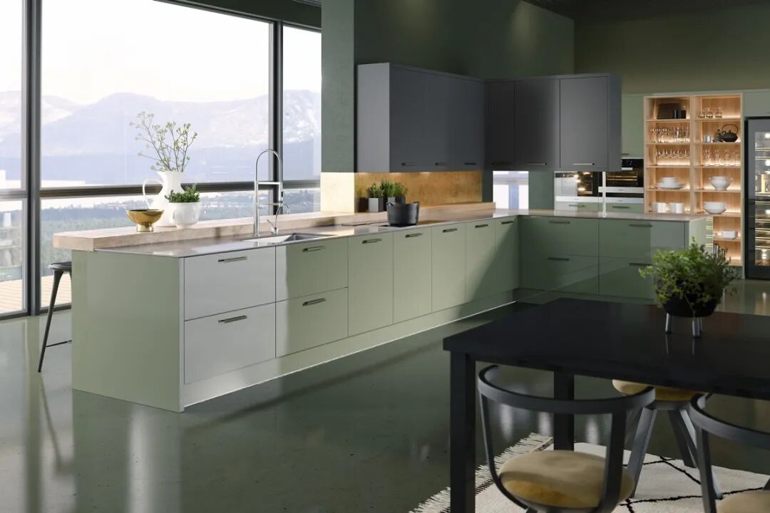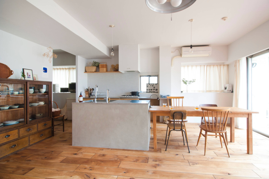 这个方式不太适合开放厨房是直角型的,不然餐桌空间会伸出来一大截,非常有违和感。