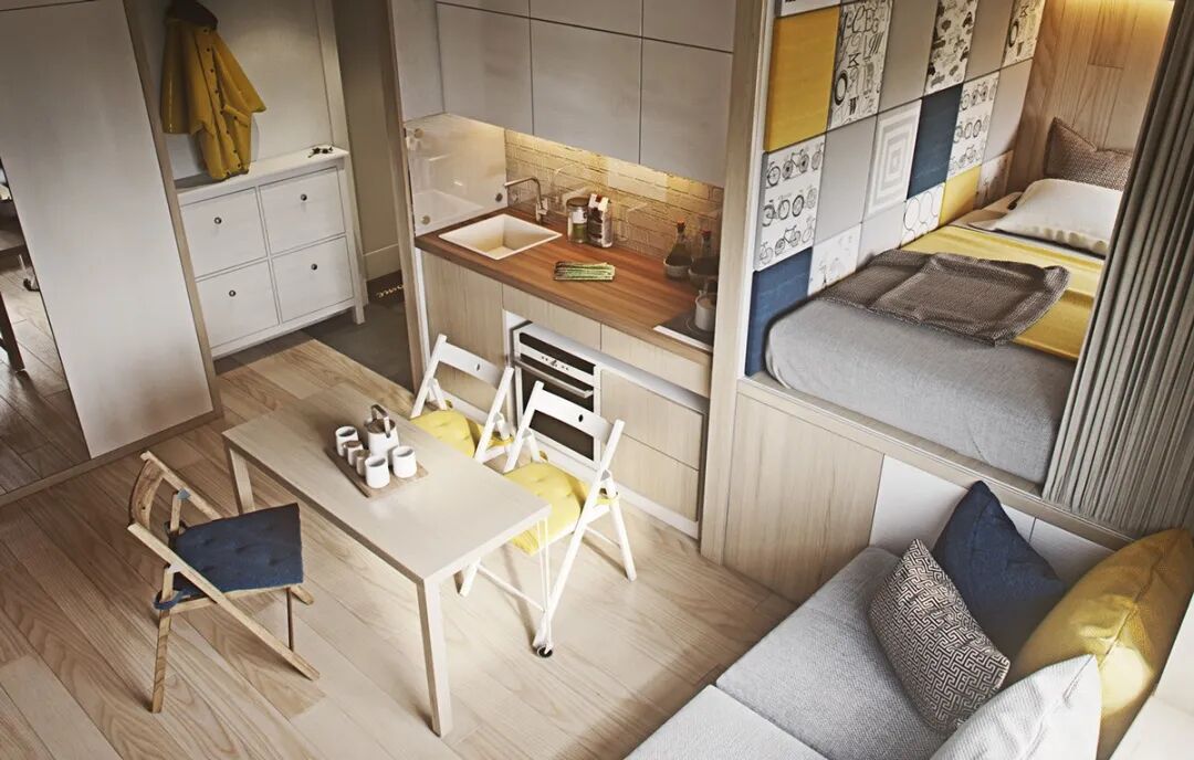 开放式厨房+小尺寸餐桌,连本来很鸡肋的走廊空间都能用起来了。