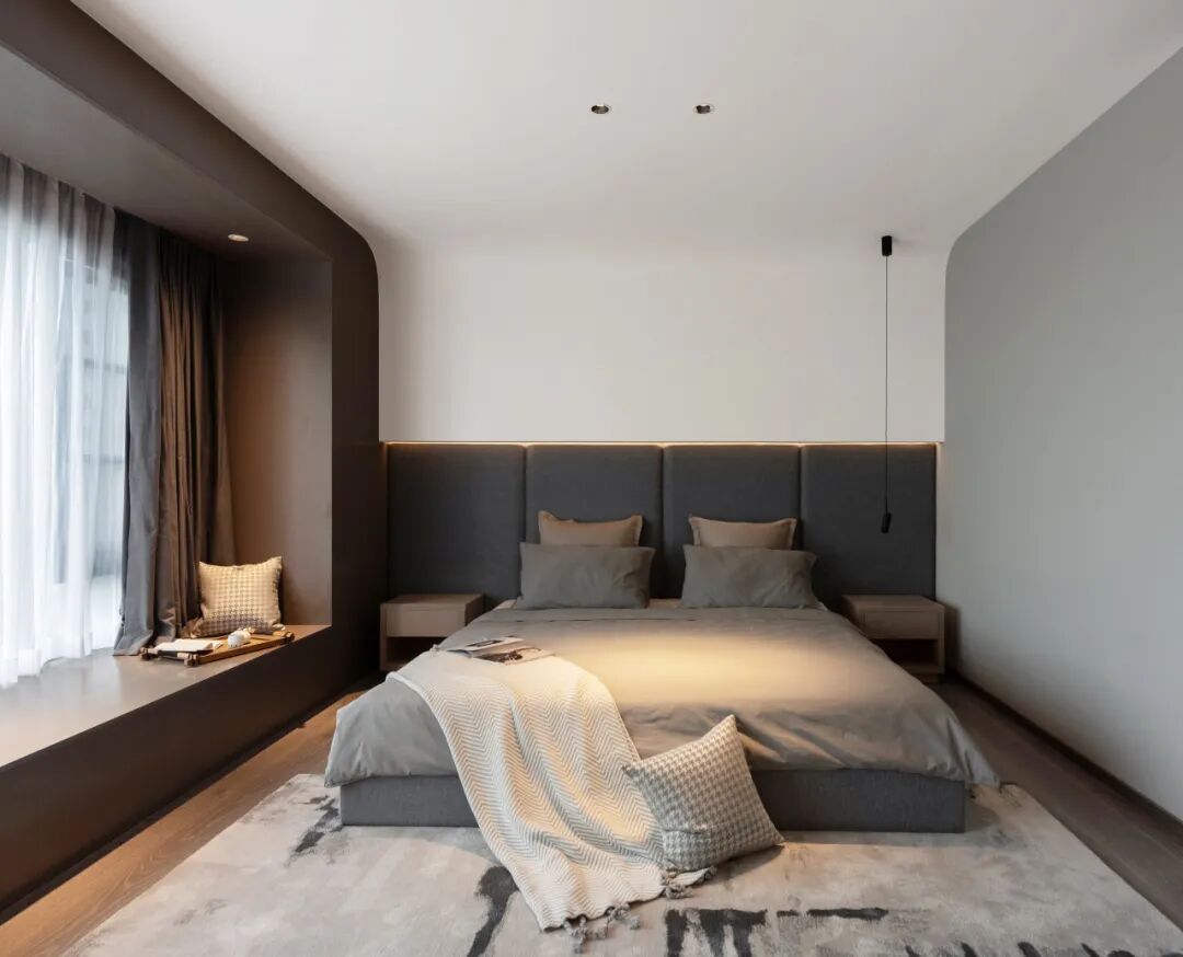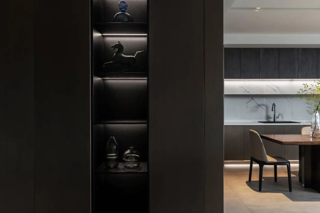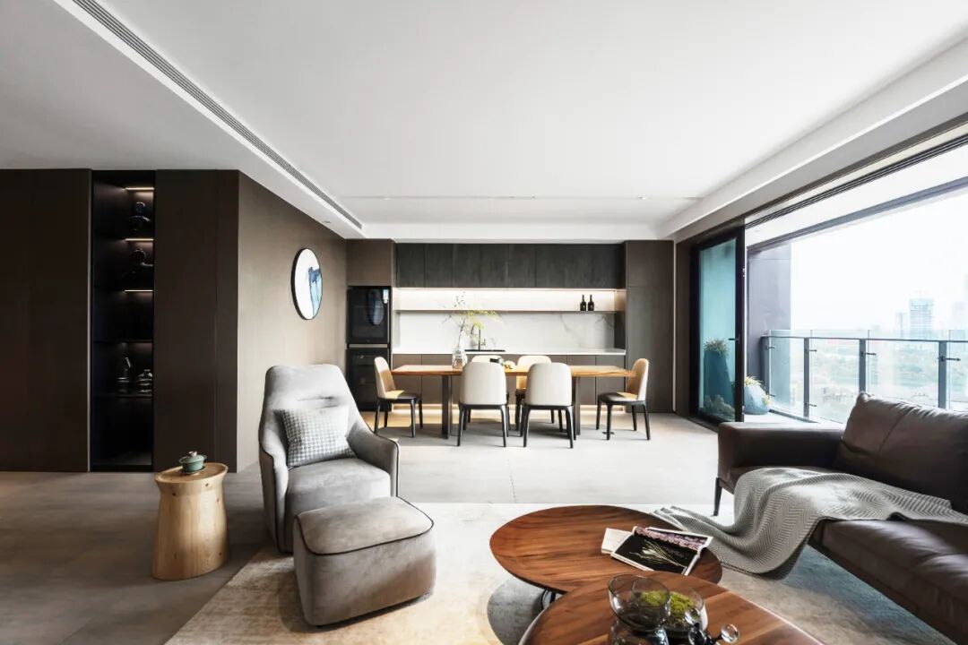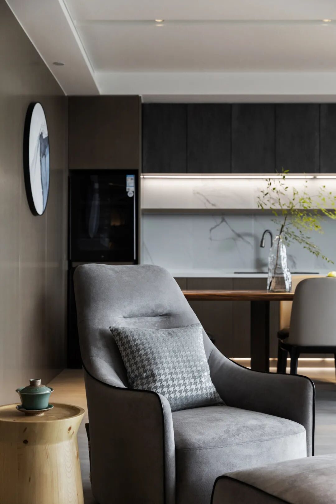 在满足功能使用的前提下仅用家具的形体元素贯穿始终,让家回归质朴无华,为空间留下自然静寂的美学概念。
