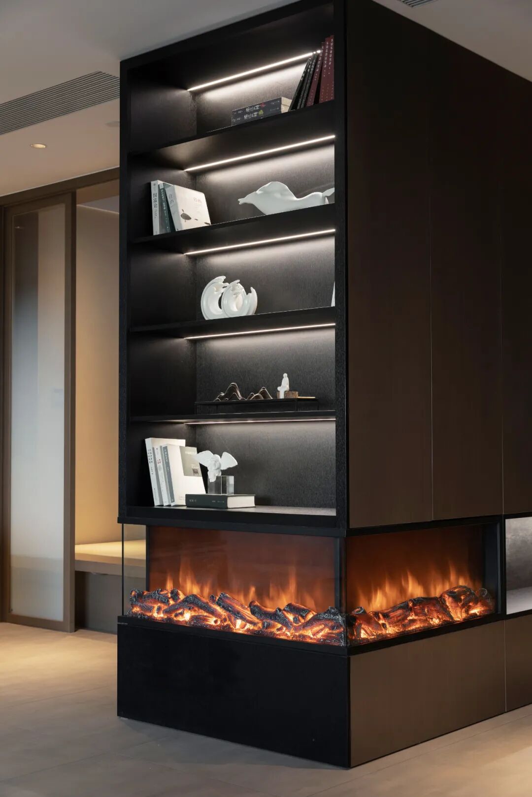 考虑到屋主两人好客,节气时令会邀请朋友来家里做客,设计师在空间格局上做了相应改动,减少小而独立的空间,减弱每个传统空间的使用界限,并以壁炉为中心,用最恰当的互动性和轻松感做着与生活最融洽的交汇。