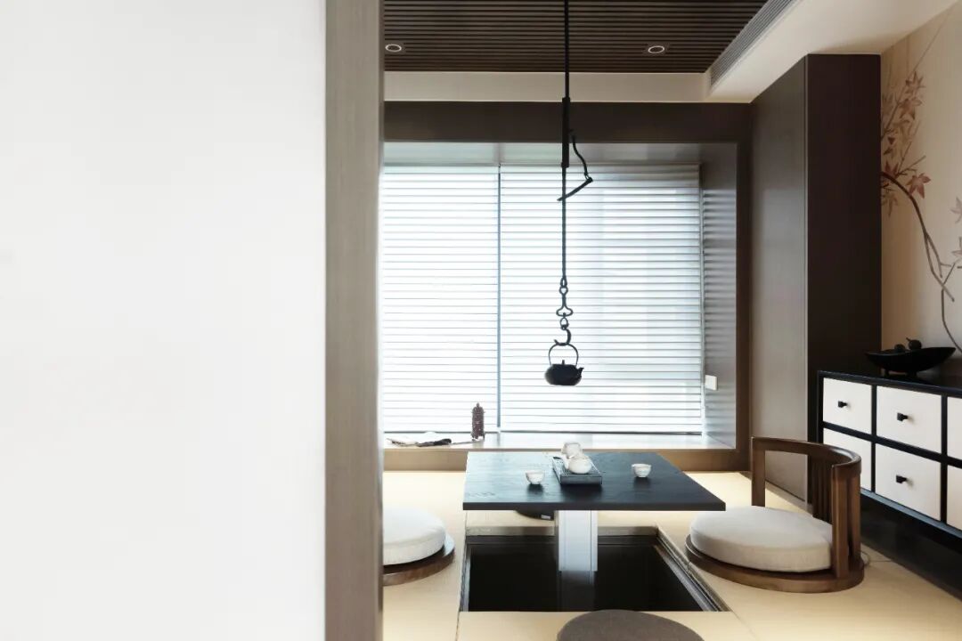 说起日本,最让人难以忘怀的便是茶,茶室与茶汤伴随着日本人稀松平常的每一天。设计师把屋主在日本的生活习惯延续到此空间中,规划了一方茶室,作为夫妻二人闲暇时的乐趣。