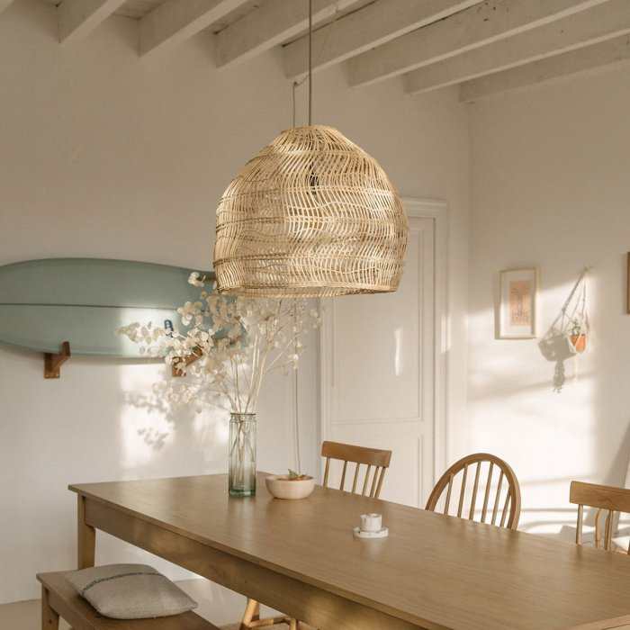 自然纤维比如藤条和柳条也在室内设计中越来越受欢迎。这种传统材料被用于椅子、地毯和灯具中,与更有现代感的设计搭配在一起。