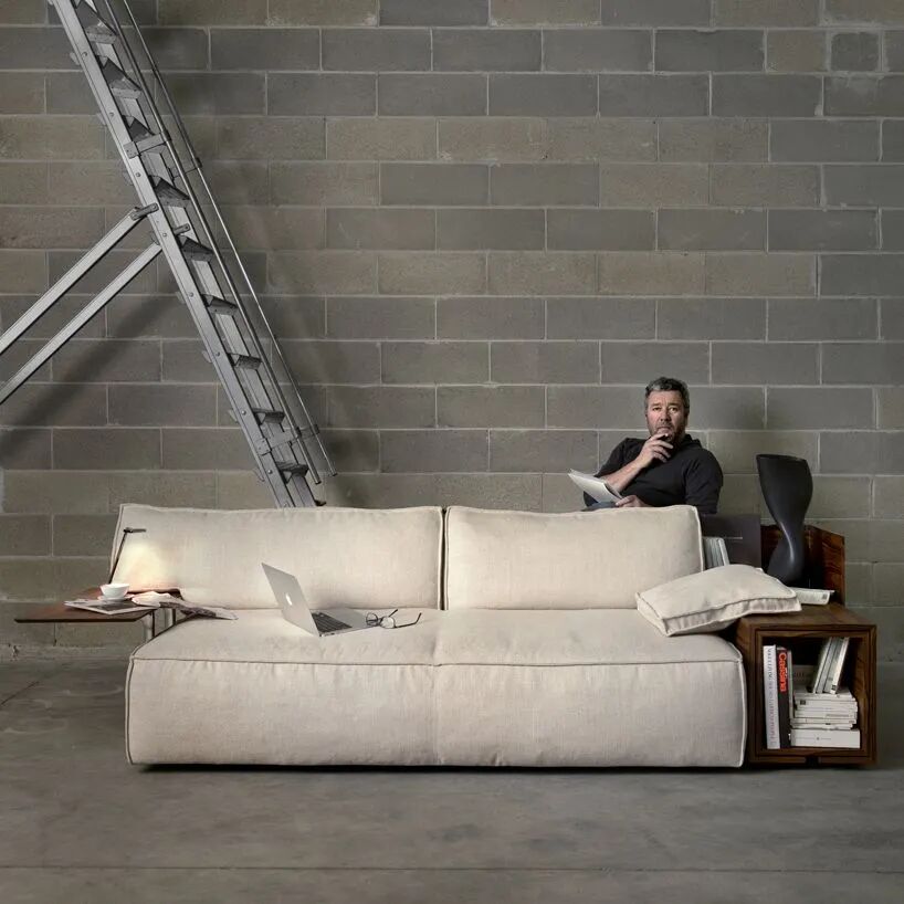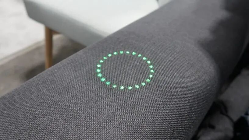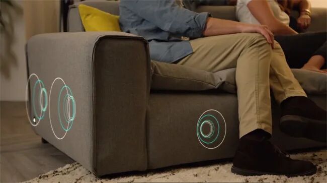 沙发除了会根据人的行为自动调节坐垫和靠背角度外,还配备了自动调节温度、无线手机充电、按摩震动等功能。