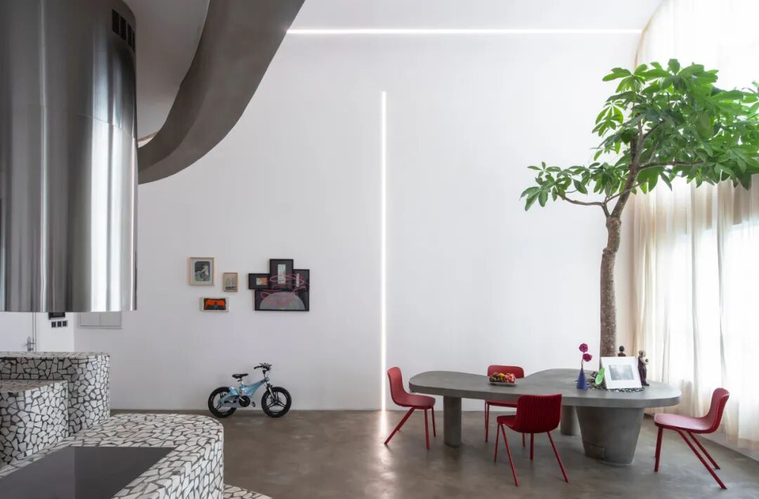 客厅、厨房、甚至是书房、工作区、走廊都不再单一存在,即便各自做着不同的事,家人朋友们也能在同一空间下互相陪伴、交流。