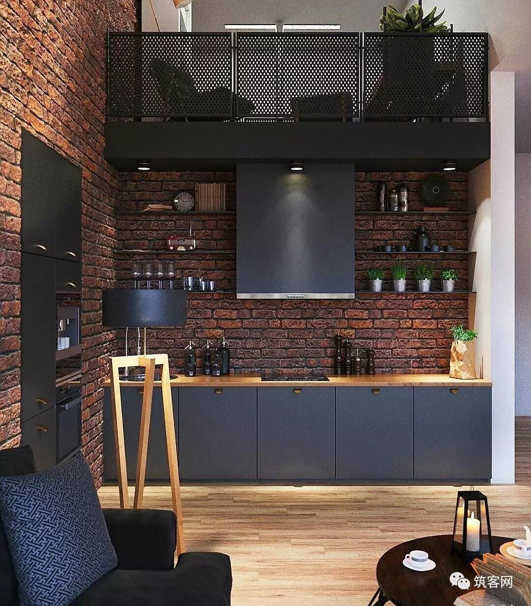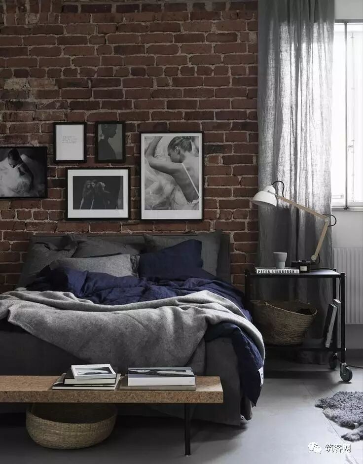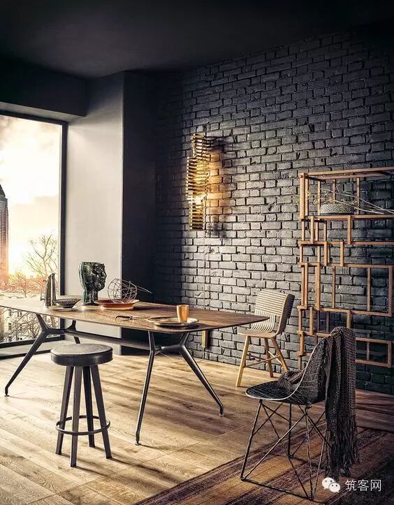 黑灰色的墙壁能创造出居室的焦点,增加居室魅力,甚至能营造舒适的感觉,黑灰色的裸砖墙更是给人视觉和触觉上以品质感。