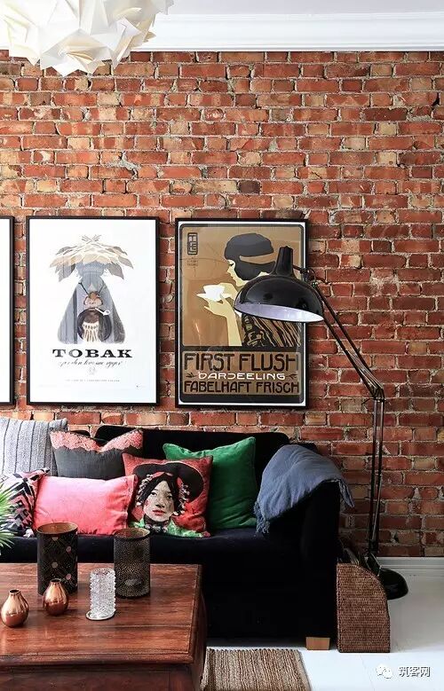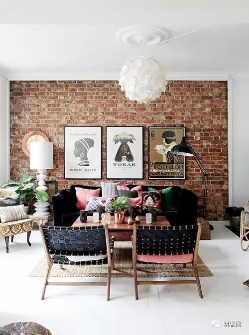 白色:红砖搭配白色的布艺摆件会让空间显得更加协调平滑,但室内不可能只有俩个颜色,红墙砖+60%的白色,一定不会出错。