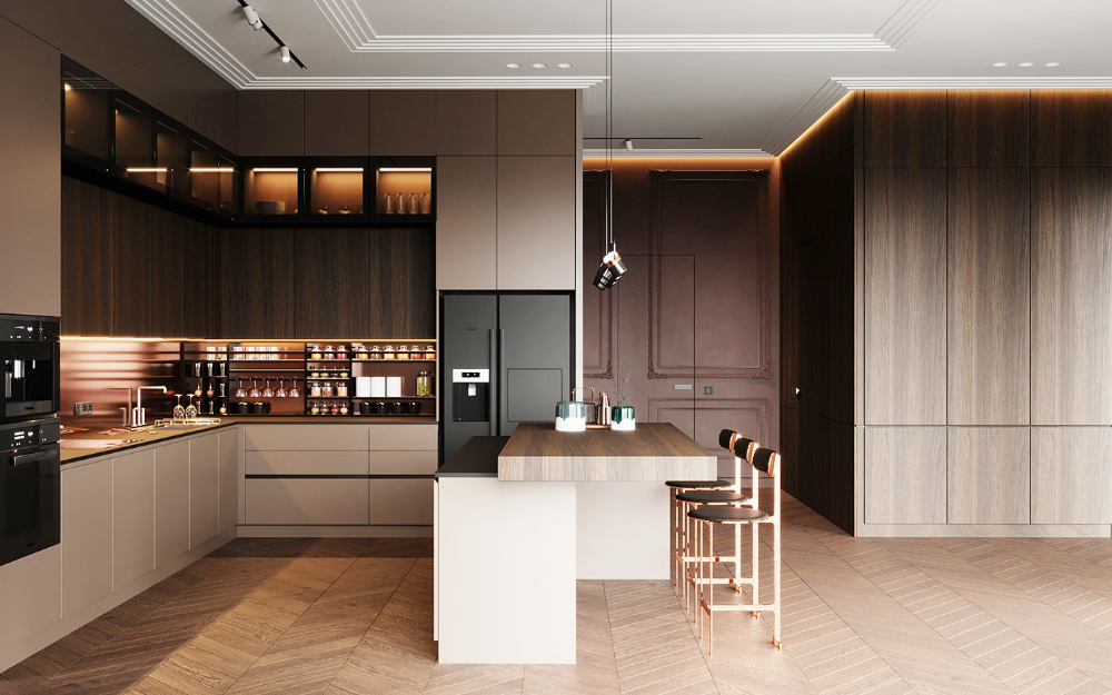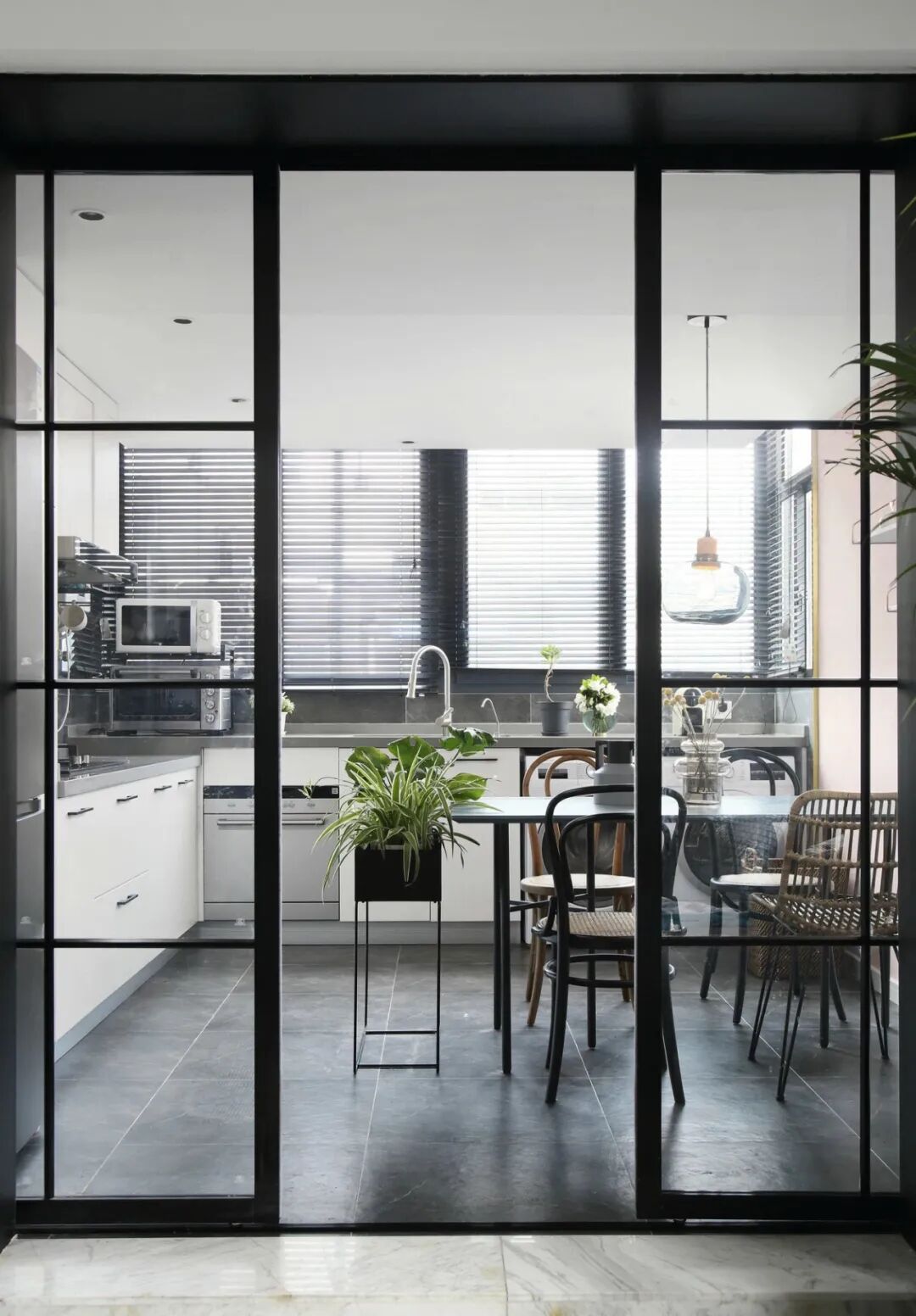 如果只是偶尔下厨或者勤加收拾倒还好,否则谁装谁后悔。当然,非要做成开放式的话也不是不可以,一道玻璃门是对煎炒烹炸的基本“尊重”。